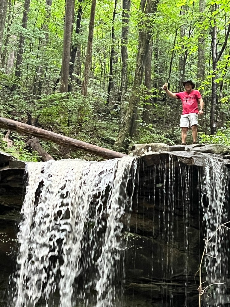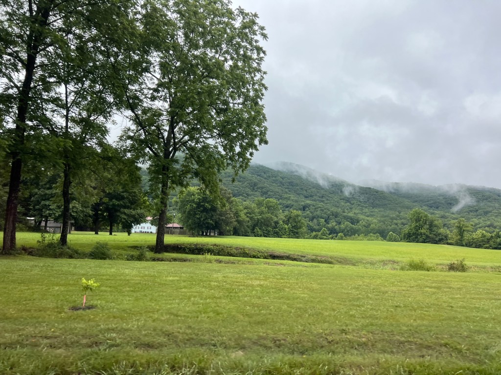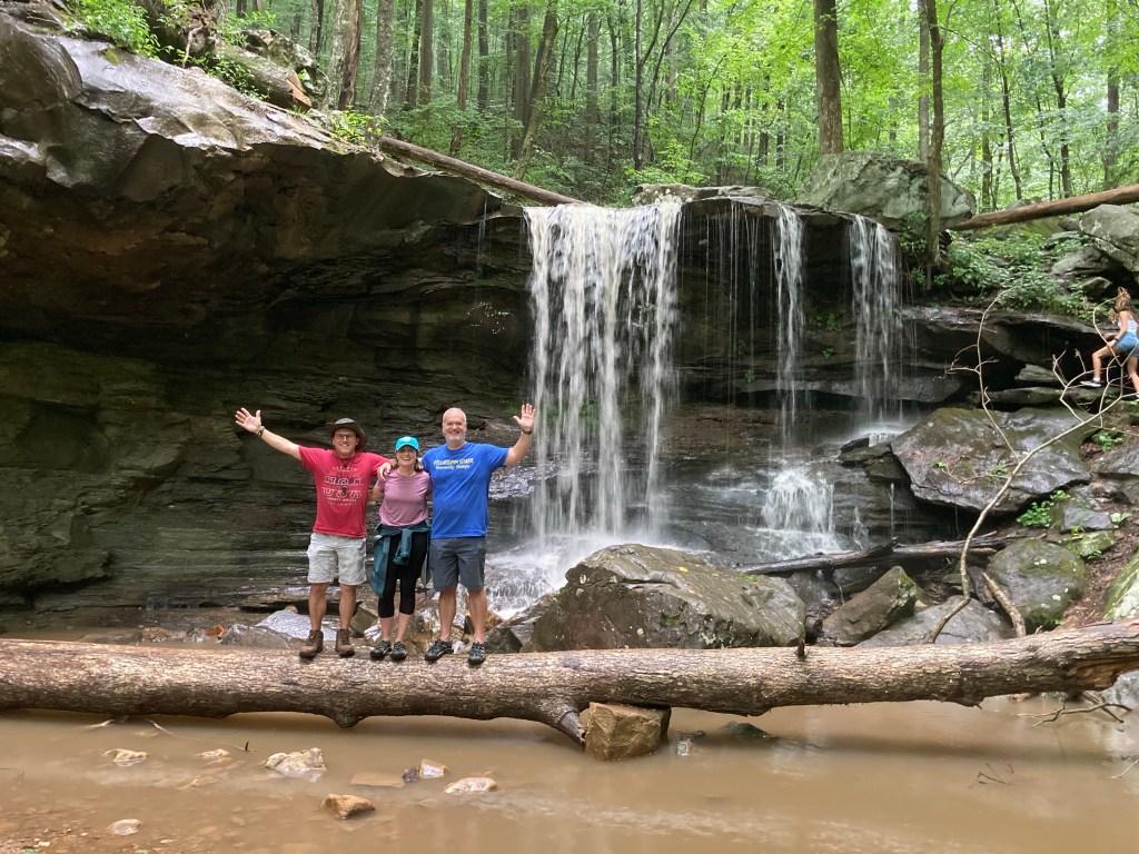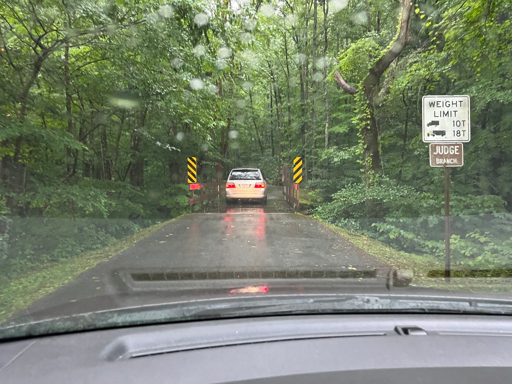 The plan was to go to Frozen Head State Park in the late morning to hike to a couple of waterfalls with our friends. Lizette decided to stay back at the farm and rest. But the rest of us headed out for a 45 minute drive to the park. We ran into a bad thunderstorm near the park entrance and waited almost an hour for the storm to pass before heading out on the now soggy trail.