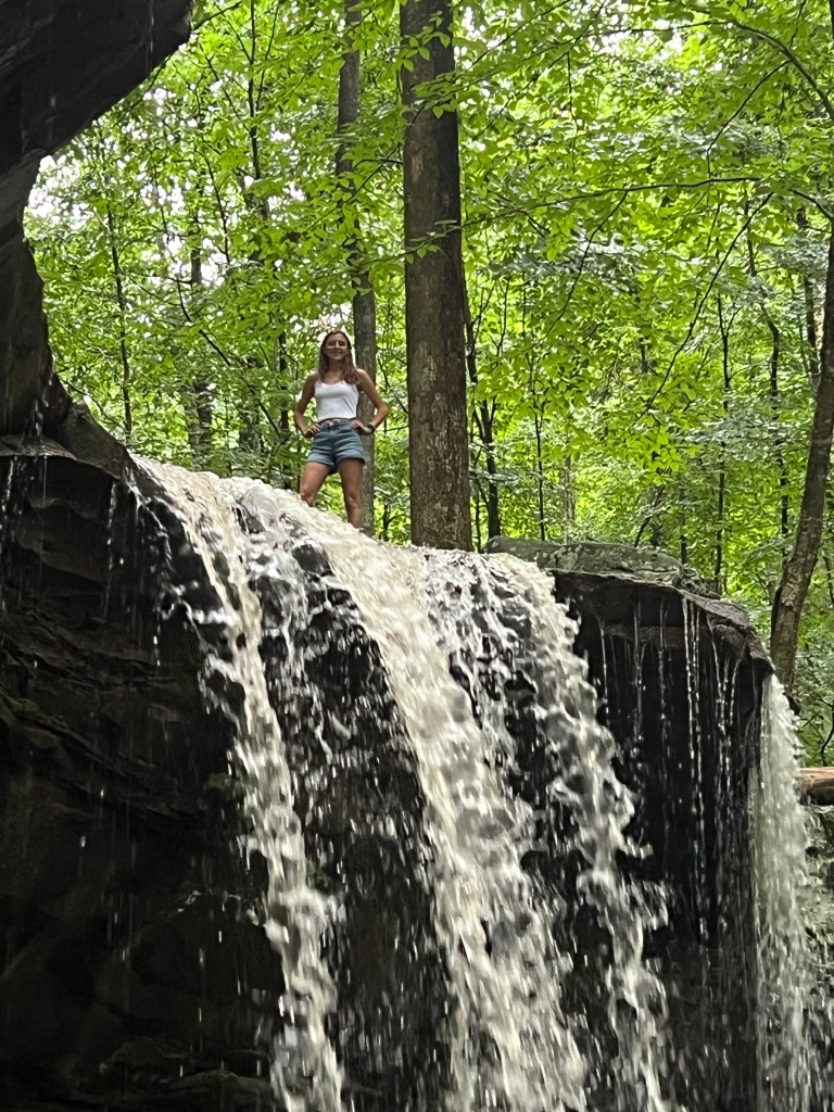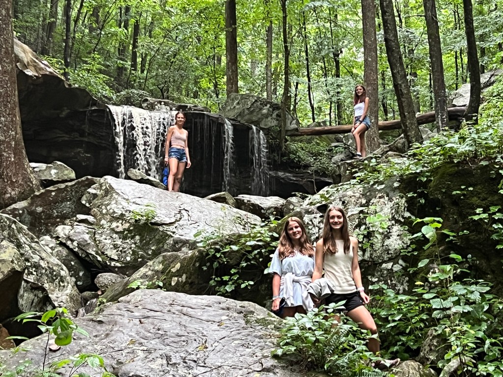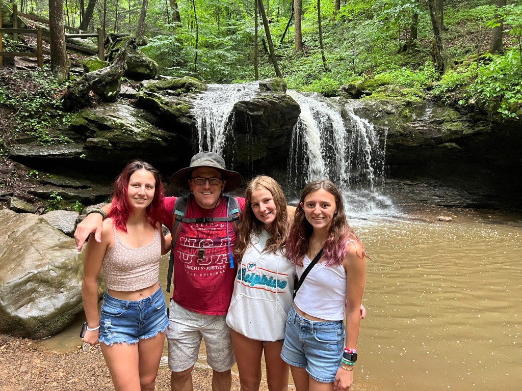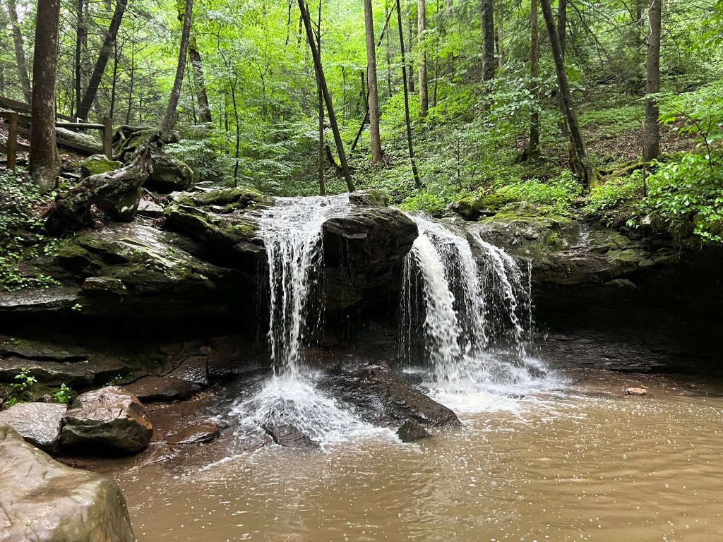 I’m glad we didn’t get deterred by the rain because this was a really nice hike. The first waterfall was of the cascading type which we got to it in about 30 minutes. It was another 30 minutes to the next waterfall. This was a really nice location. It had a good size fall and even an alcove to shield from the rain if needed. The kids all had fun climbing the rocks to the top of the falls and taking pictures in front of it on a log.