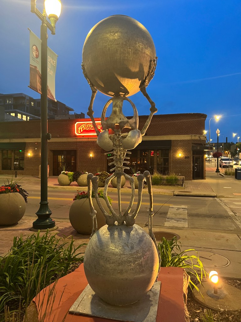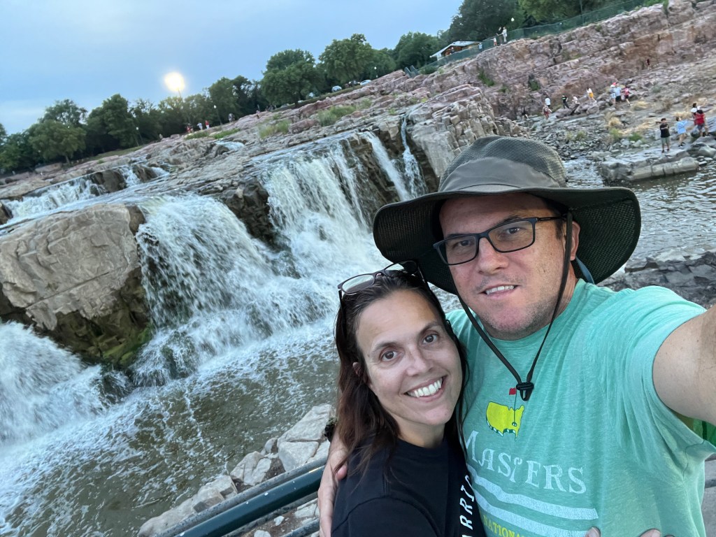 We went to a park here called Falls Park which is built around the Big Sioux River and there are waterfalls there. It was so nice walking around this park. And you can climb the rocks of the waterfall so you know that’s what we did. I cannot speak highly enough about this park and how nice it was. We spent a couple of hours there and then walked Main Street in the evening to go on the “Sculpture Walk”. The city has artists display there art sculpture all along Main Street. You can view them, purchase them, or vote for your favorite. It was pretty cool to see all the sculptures (over 50) – some as big as 15 feet while others only a foot or so. I’ll be sad to leave here, by alas, our real adventure starts tomorrow so time to go back to the hotel to get some sleep.